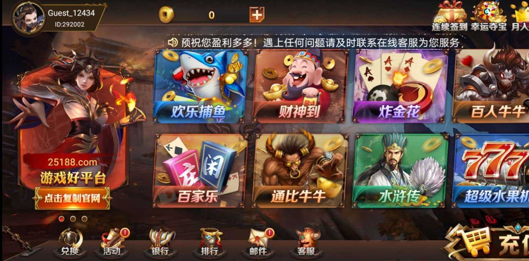 3、不用申请注册,如今就能够 玩,登陆并推送金币。