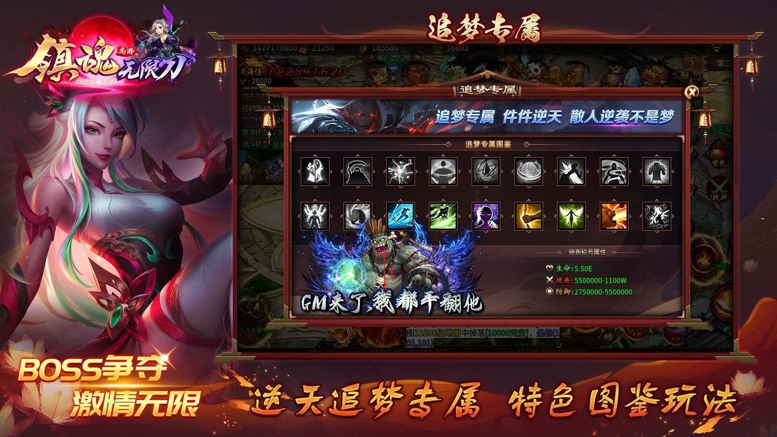 2.所有的装备都可以通过打怪来获取,提升你的作战属性;