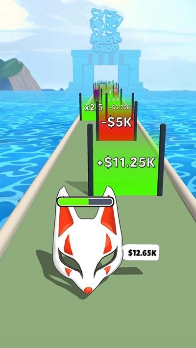 2、收集赛道上的能量道具,激活面具特殊能力突破难关。